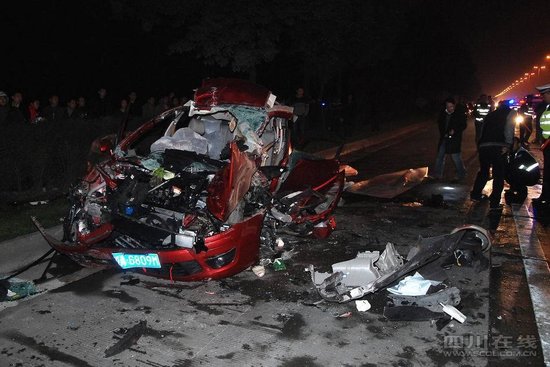 昨晚(25日)9時許,三環(huán)路南三段,一輛載了8個人的紅色世嘉與一輛大卡車發(fā)生嚴(yán)重追尾,車內(nèi)兩男一女當(dāng)場死亡,另外5人,包括兩名小孩傷勢不重,被送往市一醫(yī)院。