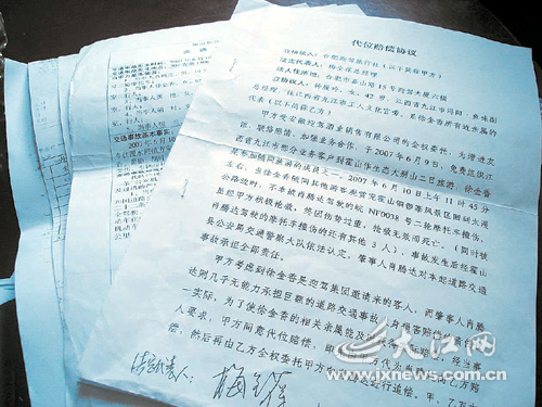 11月7日,徐金香的兒子鐘擁軍告訴記者,他們親屬對(duì)于這張《代位賠償協(xié)議》非常不滿。因?yàn)楫?dāng)鐘履玲帶著賠償協(xié)議和16萬(wàn)多的賠償金回到九江后,親屬們拿到協(xié)議書(shū)一看,發(fā)現(xiàn)了讓人不滿的條款。