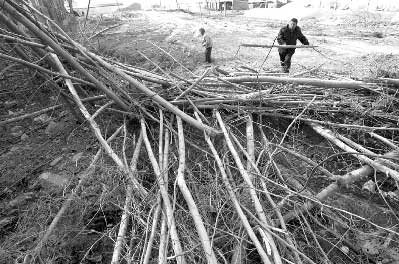 昨日下午2時(shí),記者聞訊來到現(xiàn)場時(shí),陳保民和母親、妻子正在被夷為平地的林地里整理?xiàng)顦涞摹皵啾蹥堉。“好好的一片樹林,一會兒工夫,啥都沒有了,造孽!”70歲的陳母抱著一把新鮮的楊樹枝,泣不成聲。