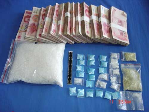 警方繳獲的冰毒及毒資。