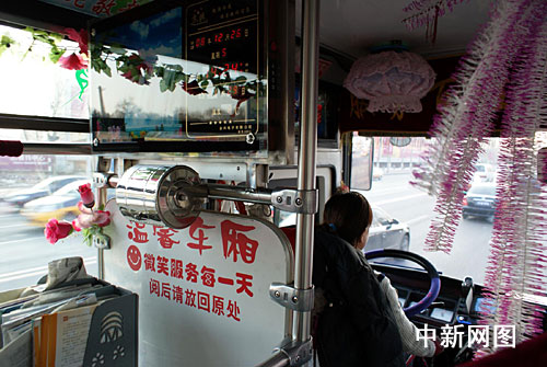 “接新車前,我就有把車廂裝扮得像自己家一樣的想法,F(xiàn)在,我的車上已經(jīng)布置了很多小設(shè)備,比如鏡子、木梳和洗漱池,都是給一些和我一樣愛美的女士準(zhǔn)備的。夏天的時(shí)候她們可以在乘車的過程中照照鏡子,打扮打扮自己。”說起自己最滿意的創(chuàng)意布置,該公交車的司機(jī)王女士這樣告訴記者。