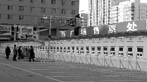 經(jīng)過(guò)5天房屋搭建和設(shè)備調(diào)試,昨日,北京西站北廣場(chǎng)西側(cè),由社會(huì)停車(chē)場(chǎng)改造的臨時(shí)售票處啟用。