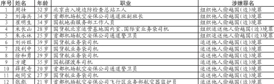 此外,案發(fā)時(shí),還有其他4名機(jī)場(chǎng)內(nèi)部工作人員協(xié)助作案。他們分別是:國貨航業(yè)務(wù)袋司機(jī)段利中、國航擺渡車司機(jī)方建、首都機(jī)場(chǎng)安保公司通道警衛(wèi)員薛乾奇及航空器監(jiān)護(hù)員張彪。