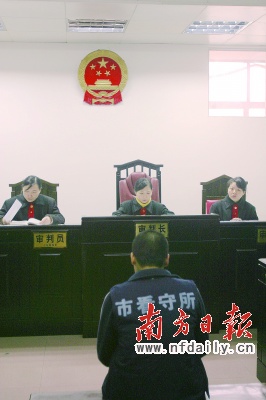 由于關(guān)押疑犯的廣州市第三看守所距離海珠區(qū)法院較遠(yuǎn),運(yùn)送疑犯的警車(chē)10時(shí)許才到達(dá)法院,原定于9時(shí)30分開(kāi)庭的此案于10時(shí)11分正式開(kāi)庭。疑犯黃新在進(jìn)入審判庭之時(shí),露出短暫的笑容。