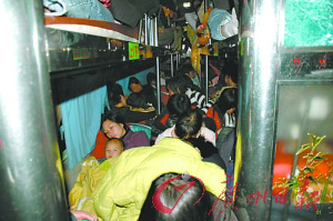 公路客運高峰昨日殺到,記者從省公安廳交通管理局獲悉,春運總體形勢平穩(wěn),但春運道路安全形勢不容樂觀,省內(nèi)交警部門在路面執(zhí)勤中連續(xù)查處嚴(yán)重超載行為,最離譜的客車核載39人,竟塞進了101人。而且還出現(xiàn)了超載客車相互串通、聯(lián)合闖關(guān)等情況,甚至有些無良司機為躲避檢查,在經(jīng)過檢查點時將乘客塞入行李廂。省交管局重申,超載行為是今年春運交通檢查的重點,除了對車上乘客進行檢查,客車行李廂也是檢查重點。