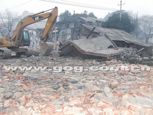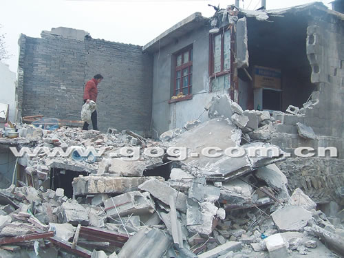 昨日下午,記者接到讀者報料后,再次來到貴陽青山路的拆遷現(xiàn)場,看到一片拆遷廢墟上,幾棟民房均已遭到不同程度的破壞。王雪娜家房屋已經被拆掉了大半,其母親正在廢墟堆里刨一些物品。“家里現(xiàn)金和攝像機等貴重物品都被搜走了,冰箱和彩電也被砸壞了……”王雪娜說,當時在場的不明身份男子至少有200多人,如果不是警方趕到并鳴槍制止,或許她家的房子早就被完全拆掉了。另一拆遷戶也向記者證實,當時警方確實開槍制止了。