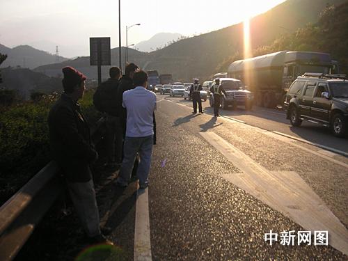 當(dāng)日下午16時(shí)30分,位于京珠高速公路廣東韶關(guān)段北行K51公里處,18名農(nóng)民工集體走上高速路面,導(dǎo)致北行車流被堵。京珠高速交警大隊(duì)接報(bào)后,立即將情況上報(bào)韶關(guān)市公安局和交警支隊(duì),同時(shí)派出警員緊急趕赴現(xiàn)場處置。