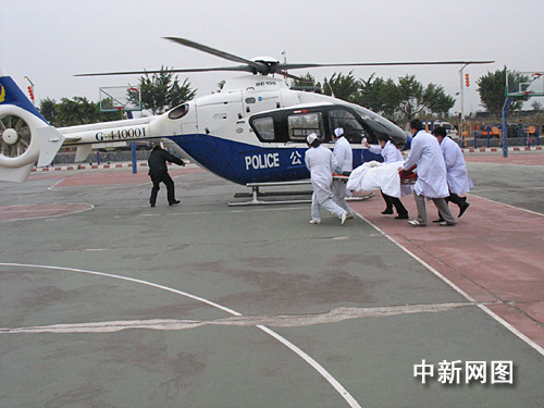 中新網(wǎng)韶關(guān)一月二十二日電(馮昶 李凌 譚富堂)一月二十二日上午,廣東韶關(guān)乳源體育館門前呈現(xiàn)緊張繁忙的景象,只見積滿冰雪的公路上,一輛輛鏟雪車開道,后面緊跟著撒鹽融冰……,直升飛機在上空盤旋,準(zhǔn)備救援傷病人員……