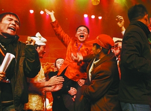 當汶川地震災民表演的歌曲和舞蹈時,全場觀眾起立致敬!八麄兘洑v災難,但很堅強”。河南籍工人小張說,晚會節(jié)目貼近百姓,也很精彩。