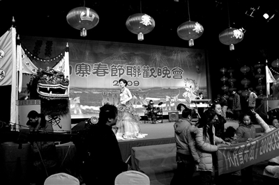 昨天下午5點(diǎn)左右,老孟一反日前對媒體三緘其口、“神秘化”的姿態(tài),通知各家媒體,山寨春晚在朝陽區(qū)勝古莊社區(qū)冶金研究所內(nèi),首次帶妝彩排。記者趕到后看到,山寨春晚現(xiàn)場布置得有模有樣——前后兩個(gè)舞臺,多角度燈光和完善的音響設(shè)備,5機(jī)位拍攝全景、特寫和觀眾表情,甚至還有一架搖臂多角度拍攝演員,儼然是一場專業(yè)水平的晚會。