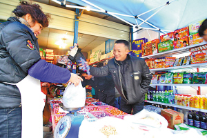 在這個市場里,幾乎所有的年貨都能買到:糖果、瓜子、蔬菜、水果、鞭炮、煙酒……連網(wǎng)吧和復印店,都能在市場里找到。