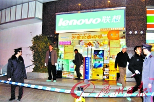 在店里的各個(gè)角落,手戴白色膠手套、腳踩鞋套的警察采集證據(jù),不時(shí)彎下腰觀察地面的情況。店內(nèi)距離店門(mén)不到一米的地方,可以清楚看見(jiàn)一攤殷紅的血跡,相信就是男子出事之處。晚上10時(shí)30分記者離開(kāi)出事現(xiàn)場(chǎng)時(shí),還不停有警察出入該專(zhuān)賣(mài)店進(jìn)行調(diào)查,旁邊的24小時(shí)便利店由于和出事的電腦專(zhuān)賣(mài)店只有一墻之隔,出事時(shí)當(dāng)班的兩名女店員也成為警方錄取口供的重點(diǎn)對(duì)象。
