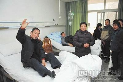 侄兒羅介平從前面點(diǎn)的平臺繞下山崖,準(zhǔn)備將羅從陽救上來。這時的羅從陽意識還算清楚,躺在地上活動了一下四肢,感覺都沒什么問題。在羅介平的幫助下,羅從陽才回到路上!皾L下來的中途有一些竹子擋到,我覺得就是頭暈!绷_從陽被山崖上的碎石磕傷了頭部和面部,滿臉是血的他讓上面等待的親人看得揪心。他還不太相信自己是被猴子推下去的。當(dāng)?shù)睾眯牡拇迕翊斜?音)聞訊趕來把羅從陽背下了山,羅家和兩名西嶺雪山風(fēng)景園區(qū)管委會的工作人員,將羅從陽送到了大邑縣人民醫(yī)院。經(jīng)過檢查,他頭部的傷并沒有大礙,縫合10余針住院觀察幾天即可。