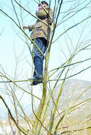 《大河報》報道,泌陽縣東棚村群山環(huán)抱,2月1日上午,村外的樹上站著一個人,正在打手機(jī)。該男子從樹上下來后抱怨道:這幾天,手機(jī)信號在村里很弱,通話時常掉線。村里人沒法子,接打手機(jī)時,不是跑到村外的山坡上,就是爬上樹。