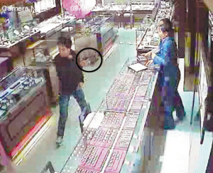 “這人我有印象,他以前來過店里!狈磸(fù)看了幾遍監(jiān)控錄像后,店長鄭小姐突然說。鄭小姐說,這名黑衣男子去年臘月底曾到過店內(nèi),當時他穿的是一身運動裝,同來的還有另一名青年男子,兩人進店后看了兩三個小時,詢問了上10種珠寶首飾的價格,但什么都沒買,她和另一名店員還曾報怨過,所以印象較深。