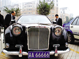 昨日,記者在論壇上看到,天涯網(wǎng)友“還說啥”貼出了兩張同樣懸掛著“渝A66666”藍(lán)底色車牌的豪華車,其中一輛為一臺限量版的日本光岡老爺車,據(jù)估計(jì)價格約為一千萬元人民幣。網(wǎng)友還指出,老爺車好像是重慶一開發(fā)商的。