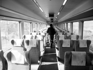 半個(gè)小時(shí)后,記者乘坐返回的Y572次列車。列車更加空曠,3號(hào)車廂中只有記者一人,車載電視也停止播放,買二等座票坐一等座也完全可以,回程時(shí)的乘客不過(guò)30人左右。