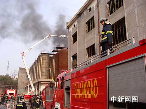 9日下午3時(shí)許記者在事發(fā)現(xiàn)場看到,6輛消防車停在火災(zāi)現(xiàn)場,消防官兵正在升起云梯架起高噴槍滅火,濃濃黑煙從車間三樓冒出,緊挨著該車間內(nèi)的是數(shù)十個(gè)發(fā)酵罐。隨后,記者上到車間二樓發(fā)現(xiàn)著火處為三樓的通風(fēng)隔熱層。由于該隔熱層并沒有通道進(jìn)入,消防官兵只有在外圍展開施救。