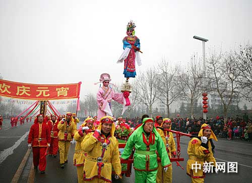 中新網(wǎng)周村2月9日電(記者 鞠成利 楊東亮 通訊員 王帝)今天上午,百年商埠山東省淄博市周村區(qū)元宵節(jié)民間藝術(shù)展演的現(xiàn)場熙熙攘攘,熱鬧非凡。踩高蹺、威風(fēng)鑼鼓、舞龍燈,以及地方特色周村芯子……來自周村區(qū)4個(gè)街道辦事處20多個(gè)社區(qū)的民間藝術(shù)表演隊(duì)伍紛紛拿出自己的看家本事,為全區(qū)百姓帶來一場聲勢浩大、喜氣洋洋的元宵節(jié)民俗盛宴。