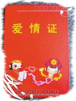 各種各樣的“愛情證書”的頒發(fā)機(jī)構(gòu)非常有意思,有“天長(zhǎng)地久愛情協(xié)會(huì)”,有“愛情證書批發(fā)中心”,也有“月老一線牽愛情鑒定中心”,還有“中華人民共和國(guó)幸?偸稹钡。