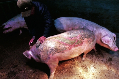 在北京順義區(qū)小店村,瑞士藝術(shù)家威姆德沃伊創(chuàng)建了一個(gè)“藝術(shù)農(nóng)場(chǎng)”:給一群豬文身,然后將之作為威姆德沃伊的“作品”高價(jià)賣(mài)出,每頭豬能賣(mài)到70萬(wàn)到100萬(wàn)元人民幣。這種聞所未聞的“創(chuàng)作”因此引來(lái)了爭(zhēng)議。