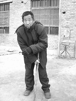 不顧家人的多次勸阻,65歲的吳述勛拄著棍、拖著傷腿吃力地站在自家的屋門前。聽說記者要來采訪,他堅持在屋外等候。這是記者前幾天到原陽縣福寧集鄉(xiāng)東程寨村采訪時見到的情景。