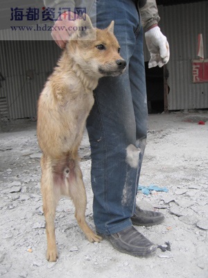晉江市永和鎮(zhèn)巴厝村李先生家的小黃狗,天生就只有兩條腿,跑起路來一蹦一跳,像極了袋鼠。