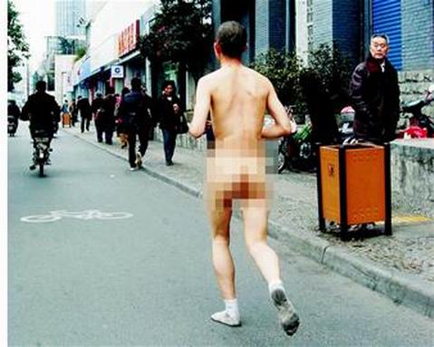 一路上,凡是“裸男”經(jīng)過的地方,行人紛紛躲避,女士們紛紛用手遮臉!奥隳小辈⒉唤橐,跑過北打金路口,朝水碾河方向奔去。“這人是不是在搞行為藝術(shù)?”一名路人說,現(xiàn)在搞行為藝術(shù)的年輕人不在少數(shù)。“太敗壞市容了,這種行為簡(jiǎn)直不堪入目。”一路上市民紛紛拿起電話報(bào)警。11時(shí)許,男子被110巡警當(dāng)街?jǐn)r住,巡警趕緊將棉衣套在其身上,隨后將其帶到合江亭派出所接受調(diào)查。