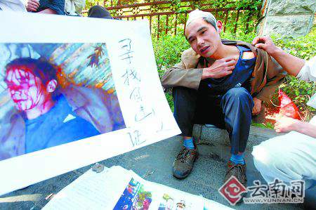 記者從昆明醫(yī)學(xué)院第一附屬醫(yī)院的檢查單上看到,朱其兵頭部外傷,伴有頭暈、頭痛、視力模糊等癥狀。在整個采訪過程中,朱其兵一直抱著自己的頭,并不時用手去摸右邊肋骨。他告訴記者,自己的頭和右肋一直隱隱作痛,右邊的鎖骨附近曾經(jīng)斷過,現(xiàn)在估計是舊傷復(fù)發(fā)了。由于沒錢,醫(yī)院要求做的檢查他都沒法做,到底還有些什么傷、傷到什么程度也搞不清楚。