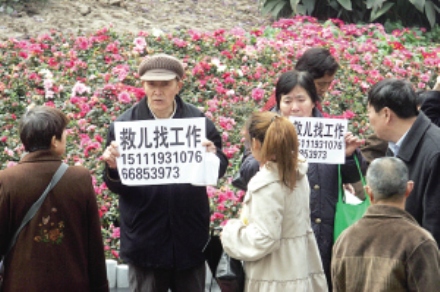 “救救我們的兒子,他才27歲!”“我和老伴身體還好,能幫你做飯、洗碗帶孩子!”昨日上午10點(diǎn)多,三峽廣場(chǎng)新世紀(jì)門口,一對(duì)老人顫顫抖抖,各舉“救兒找工作”的字牌,每逢人群圍觀和有人詢問(wèn),便急切地“推銷”自己,表示想找份工作,“我們做不動(dòng)了,還有孫子可以還賬!”