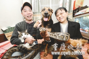 王啟懷老兩口沒有和孩子們住在一起。據(jù)了解,除了緬甸蟒外,老兩口還養(yǎng)了鷹、猴、八哥甚至青蛙等寵物,雖然寵物們每個月的直接伙食費都在300元以上,但他們卻其樂無窮,“你對它好,它就對你好。你沒有理由不善待它們!(本欄稿件由 首席記者 黃艷春 實習(xí)生 楊雪婷 采寫)