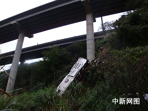 據(jù)韶關(guān)市交警部門通報,二月二十八日上午,河南省鄭州市一輛掛豫R三八五二二號牌的雙層臥鋪大客車,從河南省南陽市搭載乘客四十三人前往東莞,三月一日凌晨三時四十六分,途經(jīng)京珠高速公路粵北段南行七十九公里+二百米處時,遇見前方路面情況,采取制動及避讓措施時,碰撞左側(cè)約零點六米高護(hù)欄后,沖出高架路外,掉下約五十米深山溝,所幸在半坡處被巨大的橋柱擋了一下,才未跌落谷底。