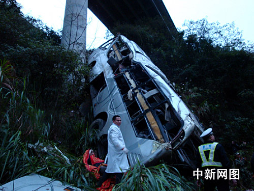 中新網(wǎng)韶關(guān)3月1日電 (馮昶 李凌 陳孔勇 陳玉升)三月一日凌晨三時四十六分,京珠高速公路廣東韶關(guān)段乳源境內(nèi)段發(fā)生一宗大客車沖出護(hù)欄,摔下山崖,造成四人死亡、五人重傷、三十四人輕傷的特大交通事故。