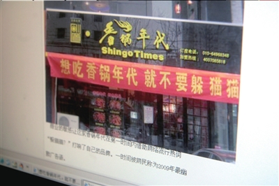 據(jù)悉,2月22日上午,這家飯店在大門外懸掛了“想吃香鍋年代,就不要躲貓貓”的橫幅,有路過的市民將這一橫幅拍照,并發(fā)布在了貓撲等各大網(wǎng)絡(luò)論壇上,引發(fā)眾多網(wǎng)民熱烈討論。
