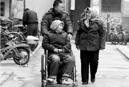 郝建平夫婦原來都是鄭州皮鞋廠的工人,后來兩人下了崗。從小患大腦炎留下后遺癥的郝建平一直是在妻子的照顧下生活,兩人還有一個可愛的女兒。但是2002年,曹青云突患腦溢血導(dǎo)致半身不遂,接連3年都沒能下床。3年間,本身都不能自理的郝建平扛起了生活重?fù)?dān)。