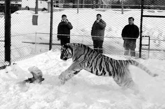 “這樣繁殖下去可不得了,不僅口糧短缺,而且近親交配相繼出生畸胎,令虎園損失慘重!蓖趺勒浣榻B。