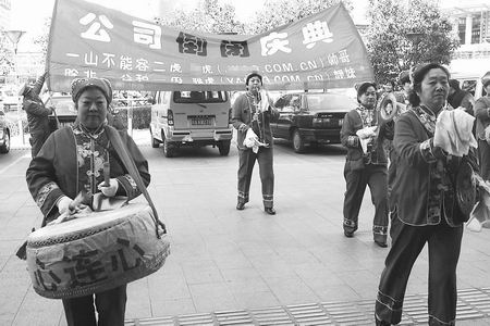 昨天上午,鄭州市二七廣場附近,一家公司扯出條幅稱進(jìn)行“倒閉”慶典,數(shù)十人擂著腰鼓!奥犝f過搞‘開業(yè)’、‘結(jié)婚’慶典什么的,還沒有聽說過開業(yè)搞‘倒閉’慶典的!眹^市民李先生不解地說。