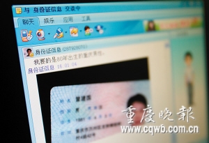 記者與其中一位QQ號為287928070、郵寄地址為北京東城區(qū)的賣家取得聯(lián)系。賣家的網(wǎng)名很直白——“身份證信息”。在口頭宣稱證件絕對真實后,賣家表示,身份證的掃描件和復印件是一個價:5元一張,5張起賣,量大從優(yōu),全國各地的都有。為表明手里“有貨”,對方主動傳來符合記者“80后”、“萬州籍”要求的男子身份證一張。記者看到,這張是二代身份證,姓名、年齡、地址等要素一應俱全。