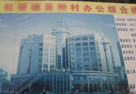 近日,一組在網(wǎng)絡(luò)上號稱“史上最牛的村辦公樓”圖片在網(wǎng)上熱傳,一張圖片展示了一幢主體框架已經(jīng)建好的雄偉大樓,另一張圖片是該大樓建設(shè)的效果圖,效果圖中的大樓相當(dāng)豪華,高達(dá)9層。令網(wǎng)友詫異的是該幢大樓竟然是一村辦公大樓,難怪發(fā)帖者稱該樓為史上最牛的。