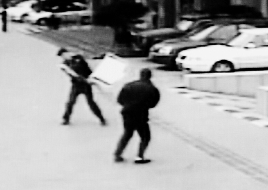 昨天上午9點(diǎn)40分左右,文三路與教工路口東南角的立元大廈,10多名身著保安制服的人,與3名男子在北門口起了激烈沖突。
