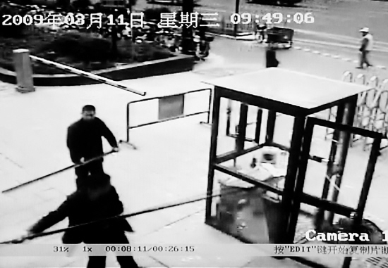 “問(wèn)題是,他們?cè)诒0矝](méi)有任何防備的情況下,沖上來(lái)就打人。三個(gè)人打倒了我們的兩個(gè)保安,還有四五個(gè)人受傷,10多名保安被打得逃到教工路上躲了起來(lái),現(xiàn)在還有一個(gè)躺在醫(yī)院里。我講的都是真實(shí)的情況,如果你不相信,可以過(guò)來(lái)看監(jiān)控錄像。”他氣憤地說(shuō)。(包敦遠(yuǎn))