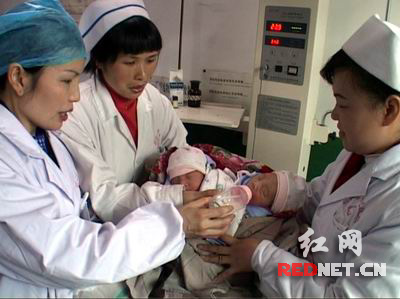 3月16日,婁底市新化縣中醫(yī)院降生了該市首例連體嬰兒。這對(duì)連體嬰兒都是女?huà)耄錾鷷r(shí)體重4.8公斤,健康狀況良好。