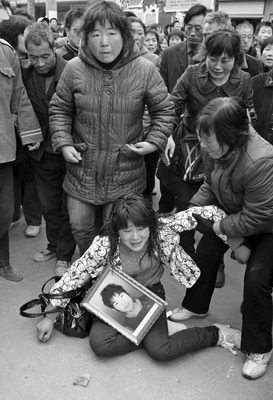 3月13日上午9時(shí),鞭炮清脆炸響,不是因?yàn)橄矐c而是送喪。運(yùn)送徐梗榮尸體的面包車(chē)從陜西省丹鳳縣醫(yī)院駛出又停下。徐的母親及大姐癱坐地上,放聲慟哭。她們不滿縣公安局不兌現(xiàn)承諾:出動(dòng)一輛警車(chē)在前開(kāi)道。一番僵持,一輛巡警車(chē)終于開(kāi)來(lái),徐梗榮,這個(gè)19歲少年的尸體在警車(chē)開(kāi)道下,被送回40公里外的寺坪村家里。
