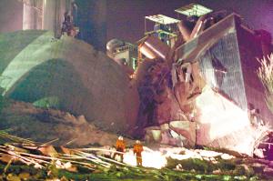 目擊者稱,事發(fā)當時聽見一聲悶響,高近20米、直徑20余米的水泥生料懸罐向公路一側崩裂,粉塵漫天向四周擴散,銅合公路上的粉塵就堆積了兩米多高。隨后,消防車和救護車趕到現(xiàn)場。目擊者稱,事發(fā)當時懸罐周圍不清楚是否有工人。