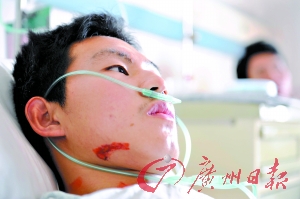 昨日中午,湖北沙市大學(xué)大三學(xué)生尹浩躺在南海松崗醫(yī)院病床上,當(dāng)回憶起前天下午那噩夢般的一幕時(shí),他禁不住再次黯然神傷。這一切,源于光天化日之下、發(fā)生在鬧市區(qū)的一起劫案。兩個(gè)血?dú)夥絼偟那嗄,與年齡相仿的3名狂徒,搏斗了10分鐘后,錢包保住了,而自己的表弟高斌卻永遠(yuǎn)地離開了……