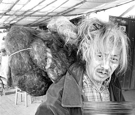 昨日上午,遂寧市靈泉寺坡頂,一個(gè)奇特老人正在采藥:他背上背著一個(gè)脹鼓鼓的黑布袋,這布袋同老人的頭發(fā)緊緊相連。布袋里裝的是什么?老人挖藥材時(shí)為什么不卸下來(lái)?布袋為什么同他的頭發(fā)緊緊相連?在好奇的旁人強(qiáng)烈要求下,老人打開(kāi)布袋:原來(lái),布袋里裝的就是老人自己的、用繩子捆得結(jié)結(jié)實(shí)實(shí)的頭發(fā)。