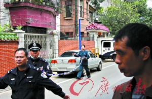 昨日中午,記者趕到現(xiàn)場(chǎng),高為5層的33號(hào)大門(mén)緊閉,院內(nèi)站滿(mǎn)民警,門(mén)前排了11輛警車(chē)。記者觀(guān)察發(fā)現(xiàn),距離33號(hào)不到100米就是廣州最為繁華的地帶之一——五羊新城內(nèi)的達(dá)道路,路上車(chē)輛穿梭往來(lái),周邊分布著廣州各大單位。距離33號(hào)大院的路對(duì)面,成排的老別墅被重新裝修一新,里面駐扎著數(shù)間公司,營(yíng)業(yè)范圍有廣告、律師等行業(yè),白天人流不少。