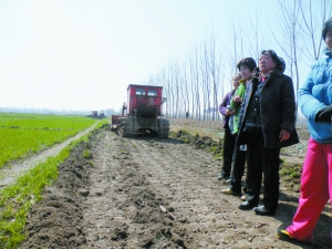 3月24日,雙方?jīng)_突升級(jí),四輛受雇于縣水利局的推土機(jī)駛向麥田,一百多村民圍過(guò)來(lái)。
