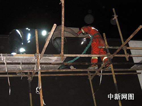 中新網(wǎng)寧波4月2日電(見習(xí)記者 何蔣勇 實(shí)習(xí)生 屠建達(dá))今天下午寧波市鄞州區(qū)一工地發(fā)生了一起跳樓未遂事件。本網(wǎng)記者迅速趕往現(xiàn)場,終于在19點(diǎn)31分左右,跳樓男子被消防官兵安全轉(zhuǎn)移到頂樓平地。