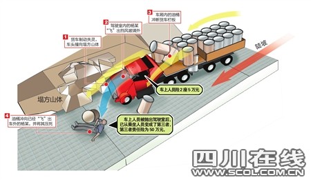 當(dāng)車行駛到云南省昭通市境內(nèi)時,由于道路坡陡,車速較快,貨車制動失靈,“砰——”的一聲巨響瞬間發(fā)出,該車車頭猛地撞到了公路右側(cè)的塌方山體上。坐在駕駛室內(nèi)的楊某一下子就“飛”出了擋風(fēng)玻璃外,車廂內(nèi)的黃樟油桶沖斷貨車欄板,將駕駛室沖離車體,然后沖向已“飛”出車外的楊某,將其壓住,致使楊某當(dāng)場死亡。文師傅和周某在車禍中受輕微傷。